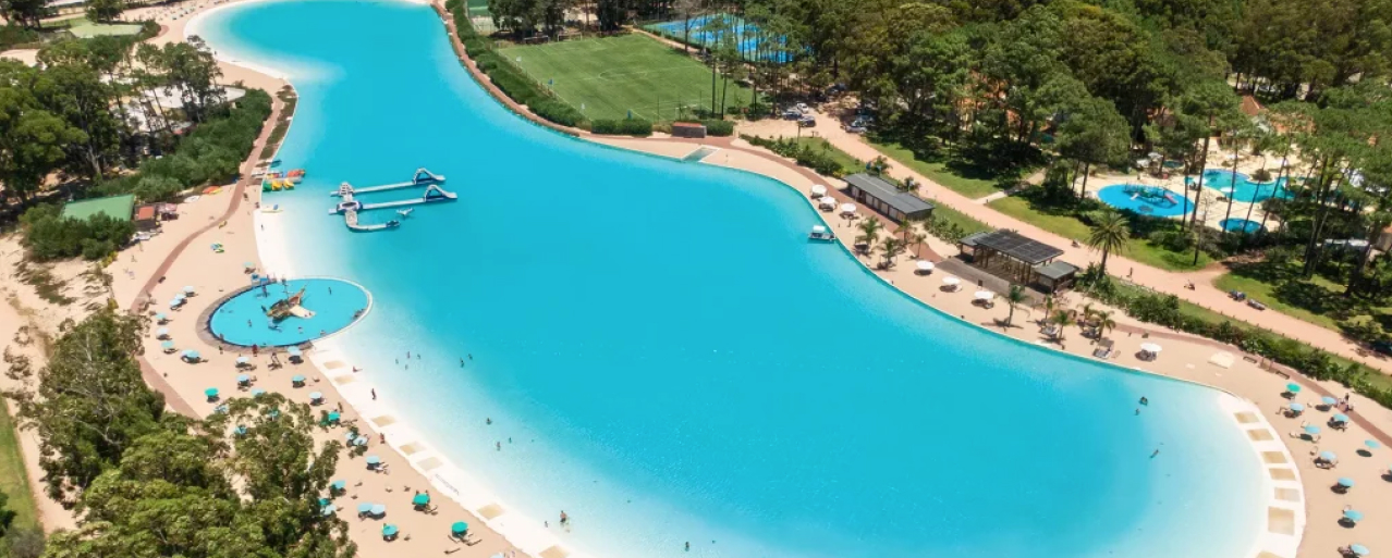 - Playa artificial: El elemento más distintivo. Será una playa de aproximadamente 6 hectáreas (≈ 60,000 m²) de agua turquesa, diseñada bajo la tecnología de Crystal Lagoons®.